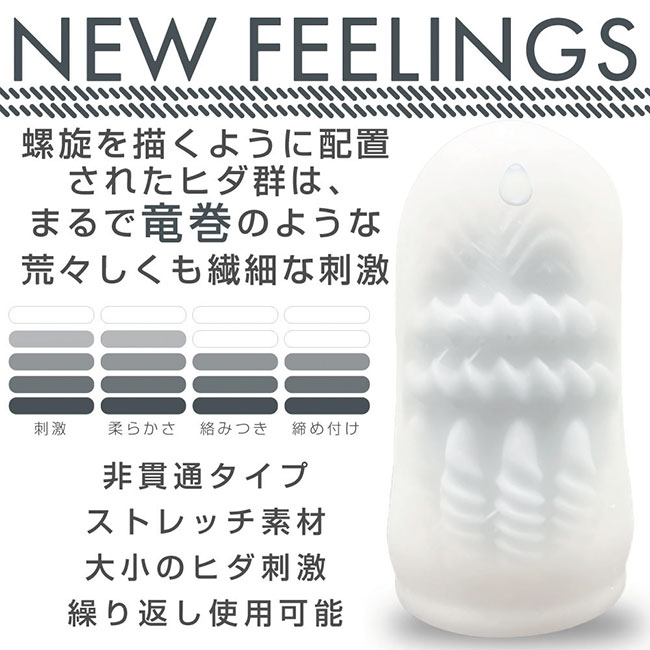 コンパクトでも実用的で繰り返し使えるミニホール。縦横へ走るヒダが竜巻に飲まれるような刺激を生む。コンパクトで持ち歩きに便利なミニホール。TORNADOは入口から最奥まで伸びる螺旋ヒダの間に、横に走るヒダが設置された2重ヒダ構造。縦へ横へと目まぐるしく変わる刺激はまるで竜巻に飲まれたような予測不能の快感です。さらに耐久性も高く、繰り返し使用可能。パッケージサイズ:10.0×5.5cm全長:9.0cm 直径:5.0cm 重量:50gタイプ:非貫通付属品:ローション付